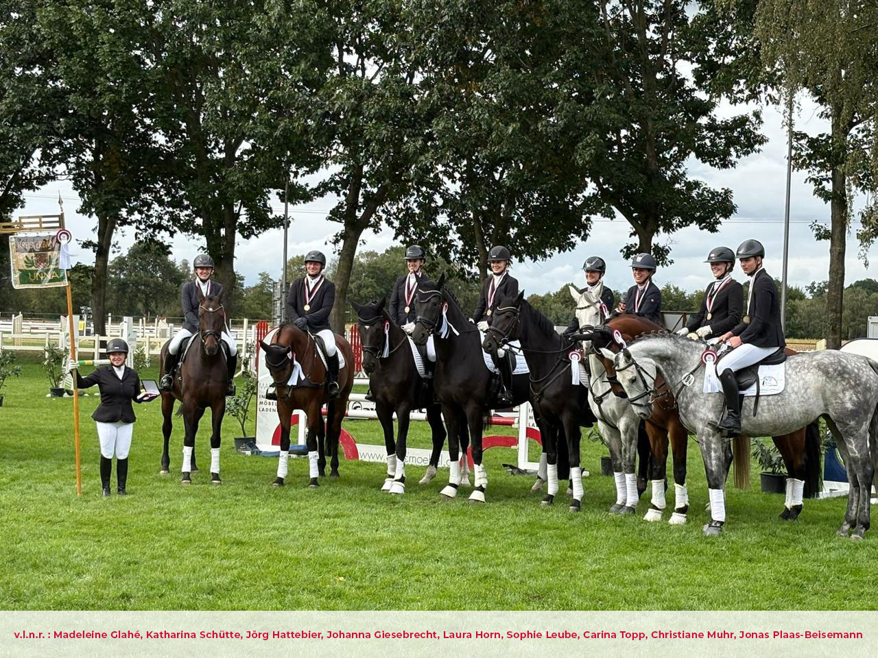 Am vergangenen Wochenende zeigte die Mannschaft des KRV Unna-Hamm – bestehend aus Mitgliedern des RV „Fritz Sümmermann“ Fröndenberg und des ZRFV Kamen unter der Leitung von Madeleine Glahé, Deike Bräutigam und Heinrich Plaas-Beisemann – ihr Können beim traditionellen Provinzialturnier, der westfälischen Mannschaftsmeisterschaft der Reitervereine, dieses Jahr am Standort Ostbevern. Hier kämpften die Mannschaften aus Westfalen und Kreisreiterverbänden um die beliebte Wanderstandarte und in der Gesamtwertung belegte das Team einen starken 3. Platz – ein toller Erfolg bei insgesamt sieben teilnehmenden Mannschaften aus ganz Westfalen!