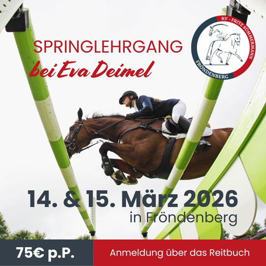 Wir freuen uns, einen Springlehrgang mit Eva Deimel auf unserer Vereinsreitanlage anbieten zu können.
